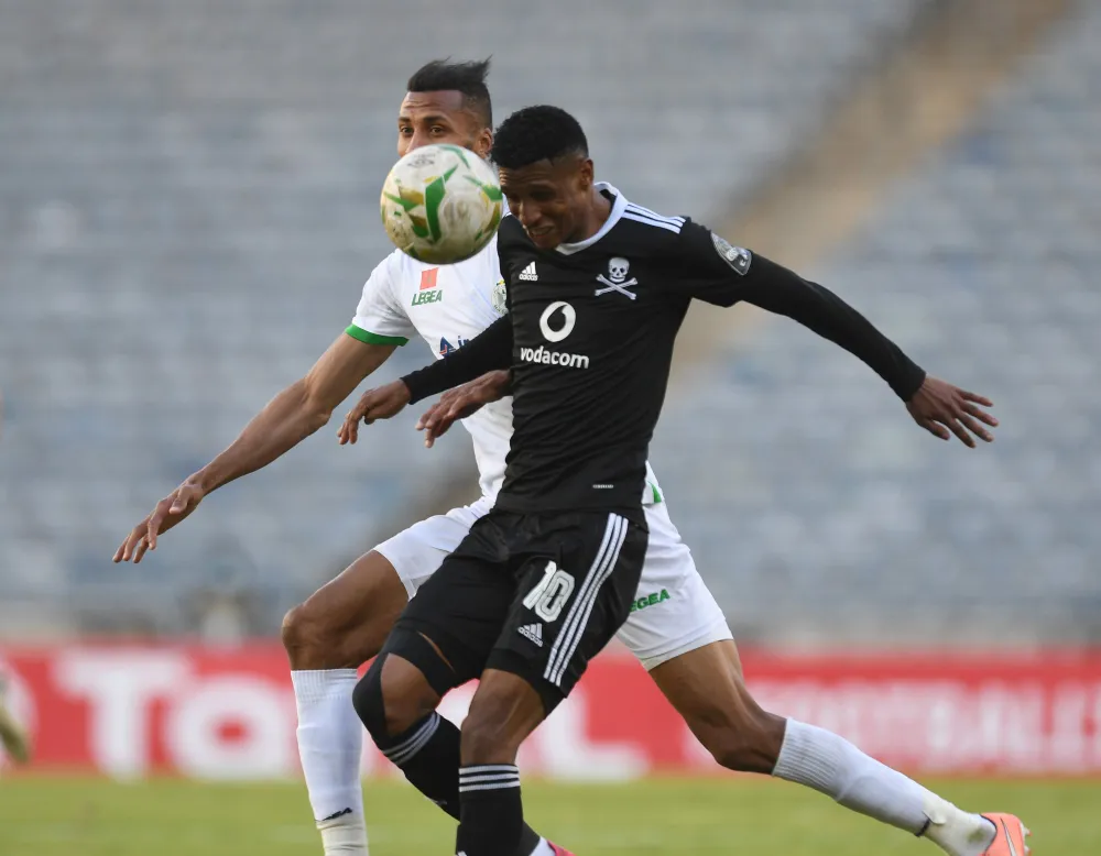 UVincent Pule we-Orlando Pirates noMarouane Hadhoudi weRaja Casablanca emdlalweni weCAF Confederation Cup obubanjelwe e-Orlando Pirates. Umfanekiso: Pic Sydney Mahlangu/BackpagePix