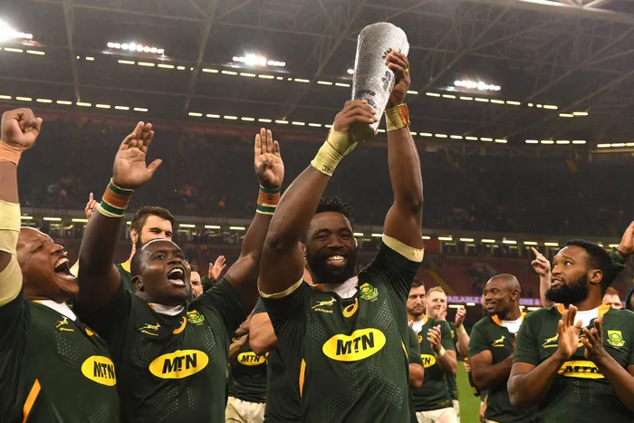 AmaBhokobhoko evuyela impumelelo emva kokubetha iWales ngempelabeki egqithileyo eCardiff. Umfanekiso: Ben Evans/Huw Evans/Shutterstock/BackpagePix