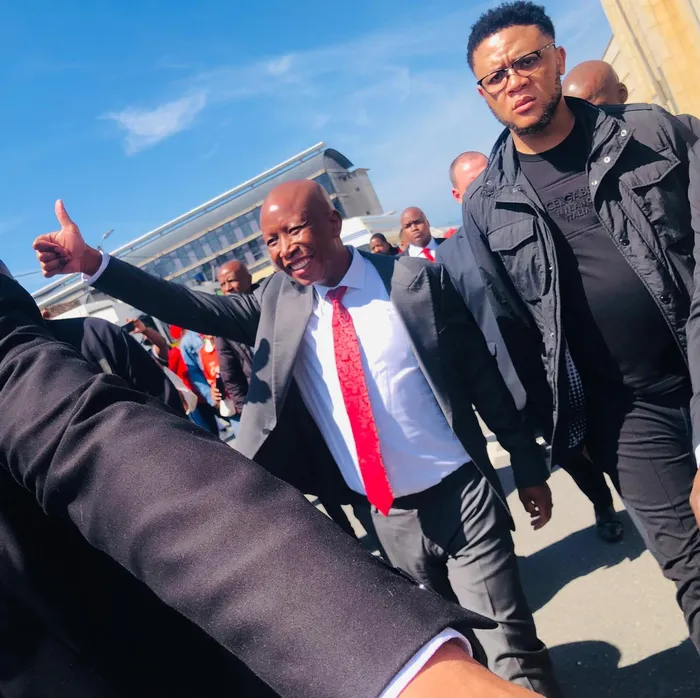 Inkokheli yombutho weEFF uJulius Malema eseqongeni phambi kwenkundla yaseMonti nofunyenwe enetyala, apha ebulela inkxaso kubalandeli bakhe ngoLwesithathu.