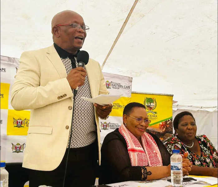 UMphathiswa wezoThutho noKhuseleko loLuntu uXolile Nqatha ethetha kumsitho wokunikezelwa kwebhulorho eChebe kuMasipala waseMnquma.