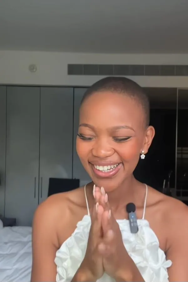 UQhawekazi Mazaleni esabelana ngovuyo lwakhe nabantu kumakhasi onxibelelwano emva kokuphumelela uMiss South Africa 2025.