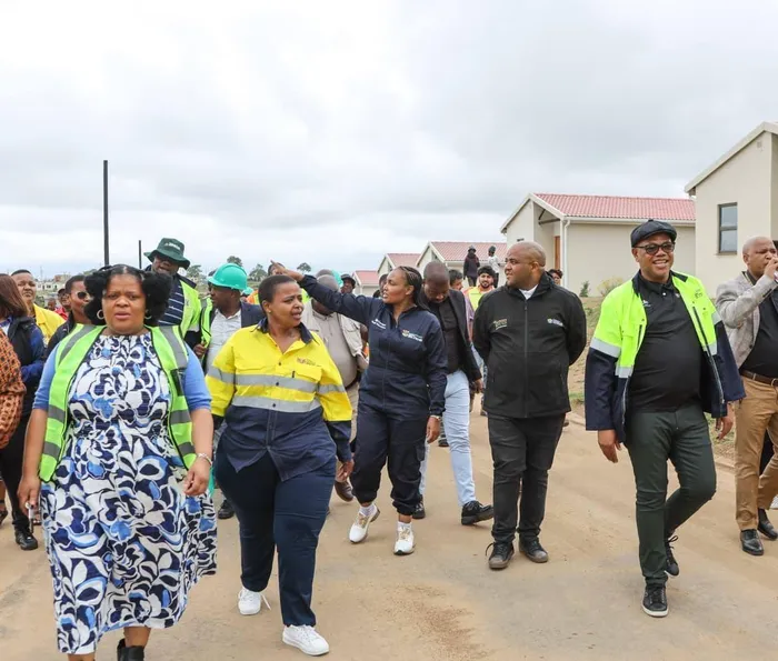 UMphathiswa wezokuHlaliswa koLuntu kuzwelonke, uThembi Simelane, uMphathiswa wezokuHlaliswa koLuntu eMpuma Koloni, uSiphokazi Mani-Lusithi kunye noSodolophu woMasipala waseBCMM, uPrincess Faku, bephelekwa ngabanye abantu ngethuba behlola izindlu ezakhiwe eZone 18 eMdantsane.