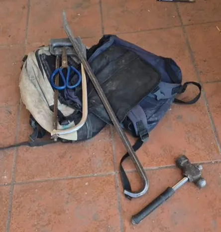 Izixhobo ezazisetyenziswa yindoda ebanjwe isiba iintambo zombane.
