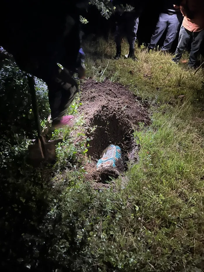 Likhutshelwe ngaphandle ipheyile elinomzimba wenkwenkwana eneminyaka emithathu (3) izelwe eyangcwatywa ngumama wayo nendoda ethandana nomama wayo.