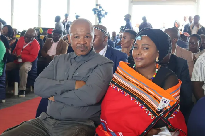 UMphatheli Hani kwakunye nonkosikazi wakhe kumsitho ubukowabo wokukhunjulwa kowayesakuba litshantliziyo uThembisile Chris Hani kuSabalele eCofimvaba.